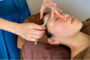 お顔のシェービングは産毛を剃ると同時に古い角質も取ってくれるので、お化粧のノリが良くなるメリットもあります。